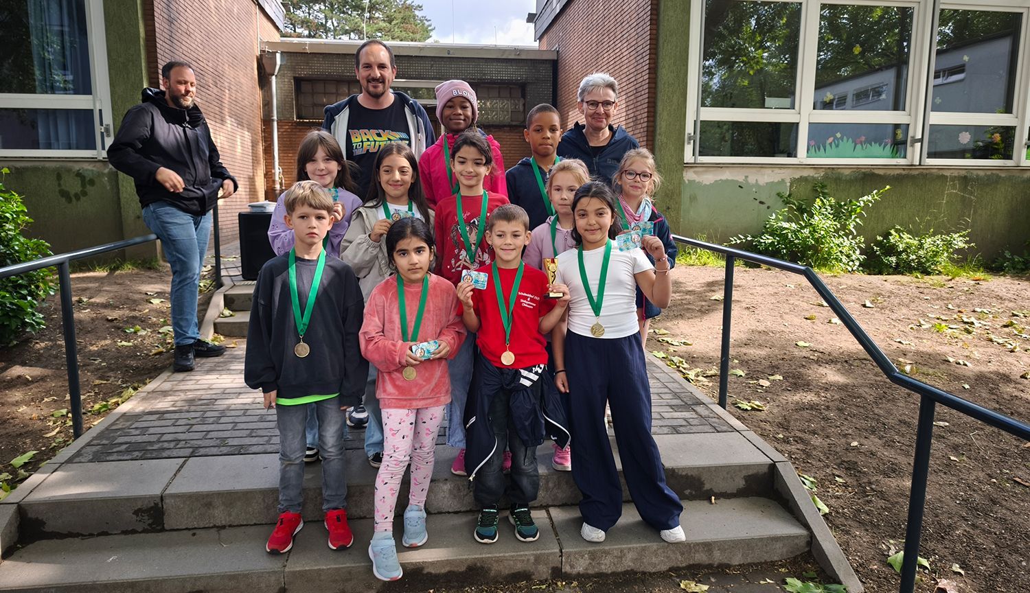 Am Freitag, den 06.06.2025 versammelte sich unsere Schulgemeinschaft bei schönstem Wetter auf dem Schulhof, um besondere sportliche Leistungen zu feiern und Danke zu sagen.
