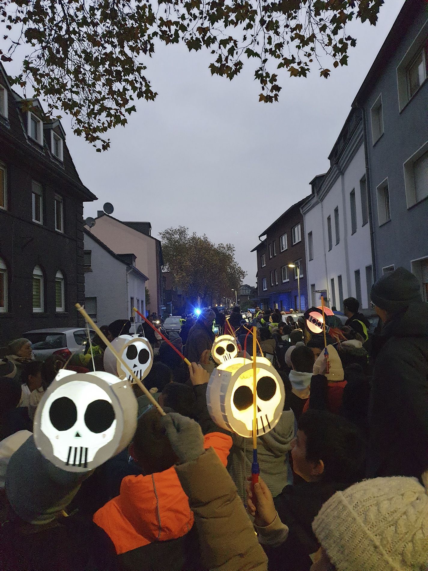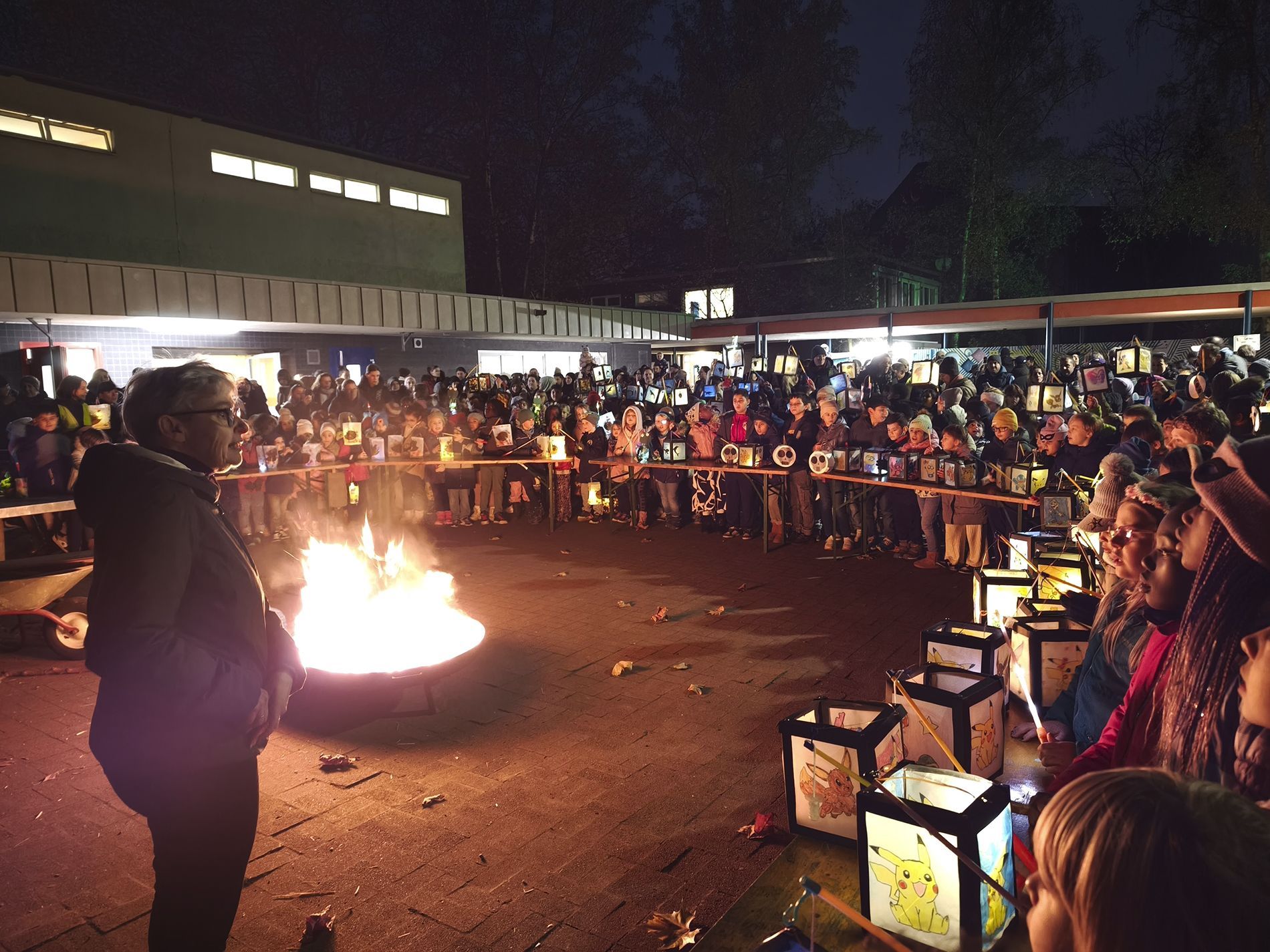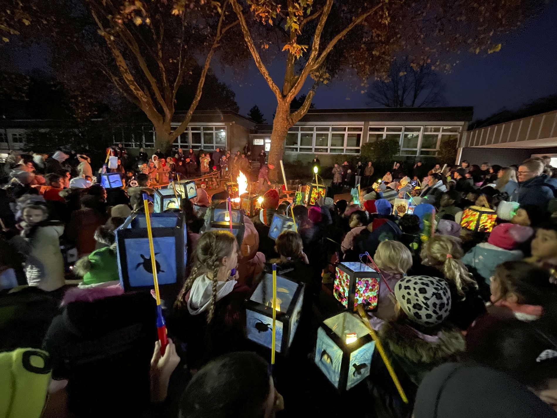 Am Freitag, den 08.11.2024 fand auch in diesem Jahr wieder unser Laternenumzug zum Martinsfest statt. Die Klassen hatten im Vorfeld fleißig Laternen gebastelt und die Martinslieder geübt. Der Zug startete um 17 Uhr auf unserem Schulhof, als es bereits langsam zu dämmern begann. Laut singend zogen wir durch die Rothebuschstraße, die Koppenburgstraße und die Nebenstraße, um uns anschließend wieder auf unserem Schulhof um das Feuer zu versammeln. Hier sangen wir noch einmal alle gemeinsam das Lied von Sankt Martin. In der Zwischenzeit war es nun auch schon dunkel geworden, sodass die Laternen noch schöner leuchteten. Ein Ständchen für Frau Mahr und Frau Ralf, die an diesem Tag Geburtstag hatten, durfte natürlich auch nicht fehlen. Anschließend gab es leckere Brezeln, Grillwürstchen und warme Getränke. Gegen eine kleine Spende konnte man sich Bücher vom Büchertisch mitnehmen.