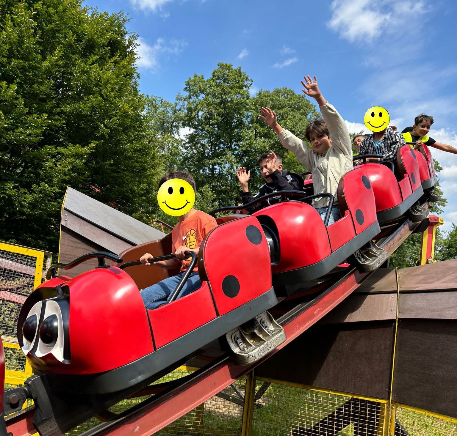 Unsere Highlights waren der Gruselkeller und die Marienkäferachterbahn, aber es gab natürlich auch noch viele andere tolle Attraktionen. Diese versetzten nicht nur die Kinder in großer Begeisterung, sondern auch die Lehrerinnen und Begleitpersonen. So durfte eine Fahrt auf der Achterbahn auch bei den Erwachsenen nicht fehlen.