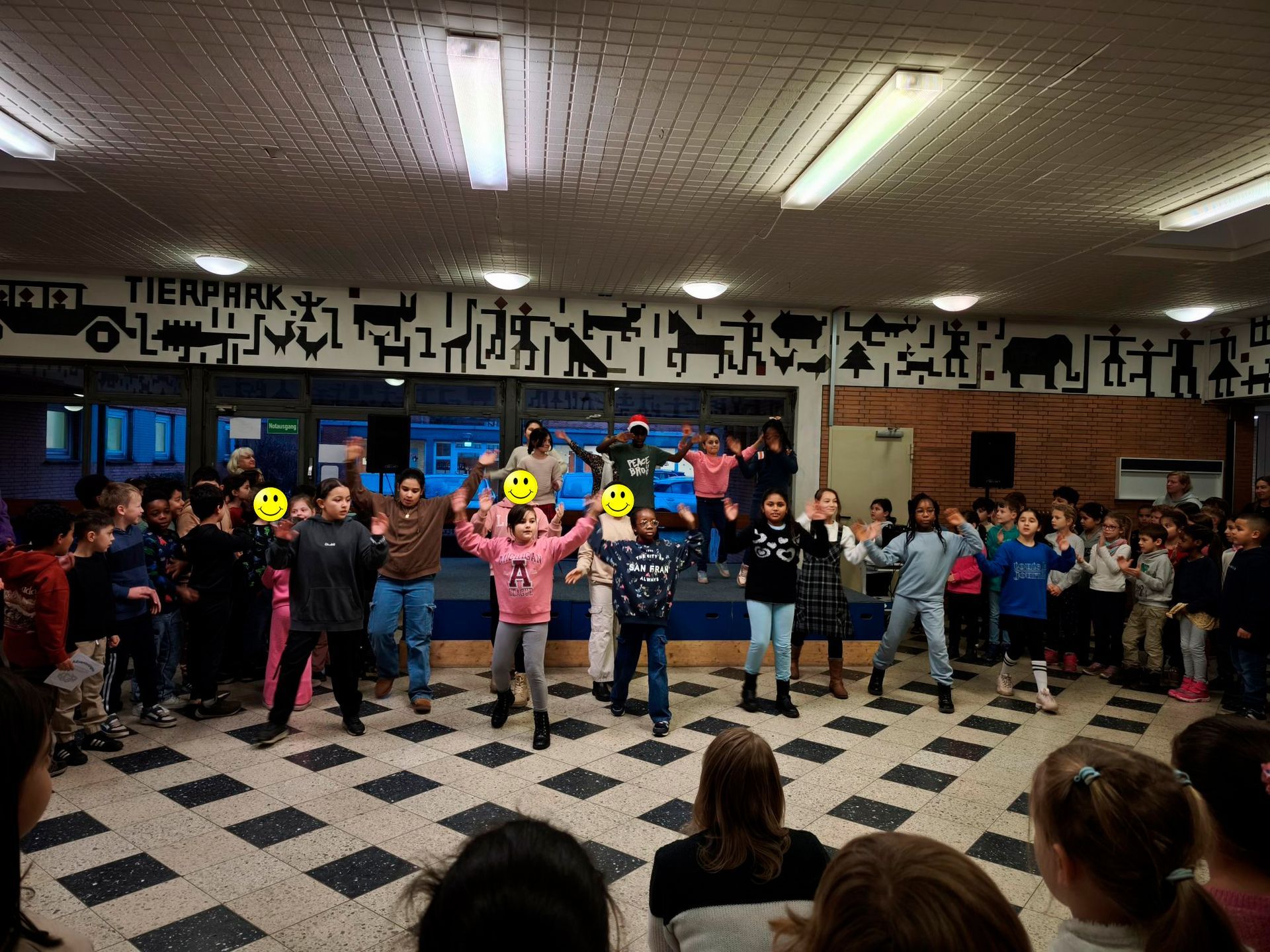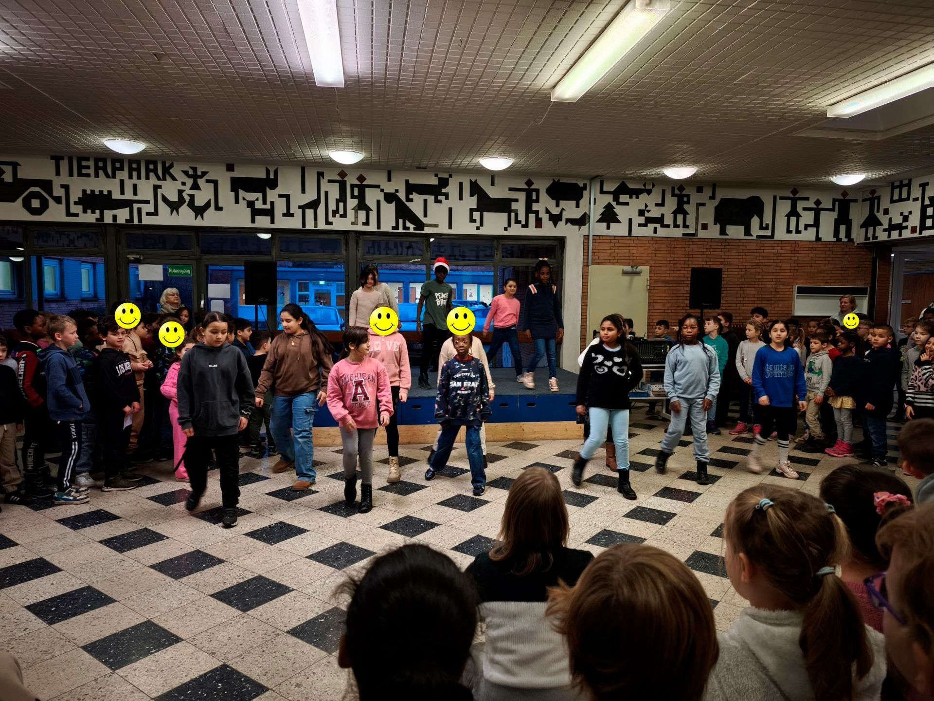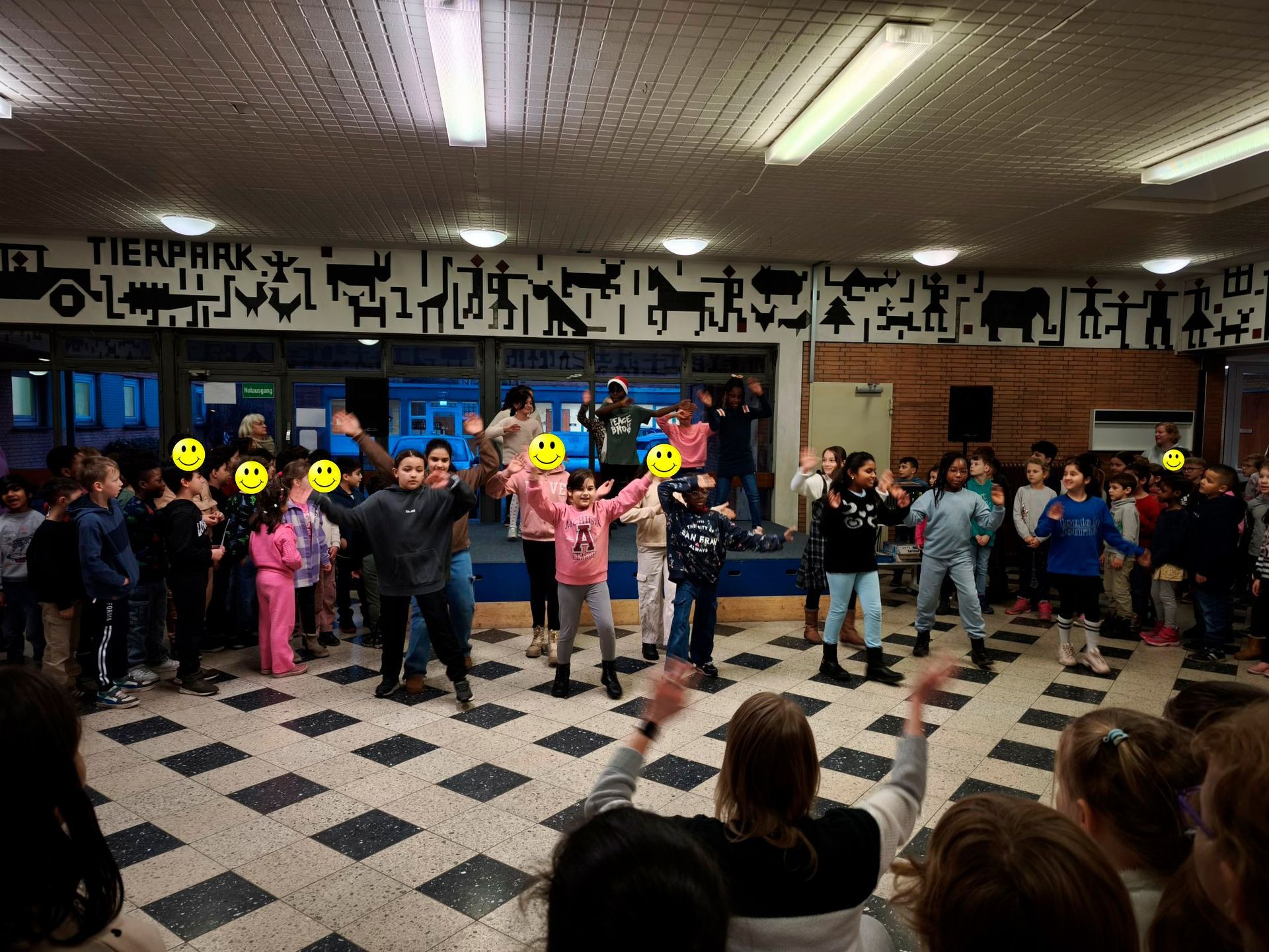 Ein besonderes Highlight war der gemeinsame Sitztanz mit Frau Jörgens zu dem beliebten Lied "Lollipop". Hier machten alle mit – egal ob groß oder klein – und sorgten für ein fröhliches Miteinander, das den Zusammenhalt der Schulgemeinschaft einmal mehr spürbar machte.