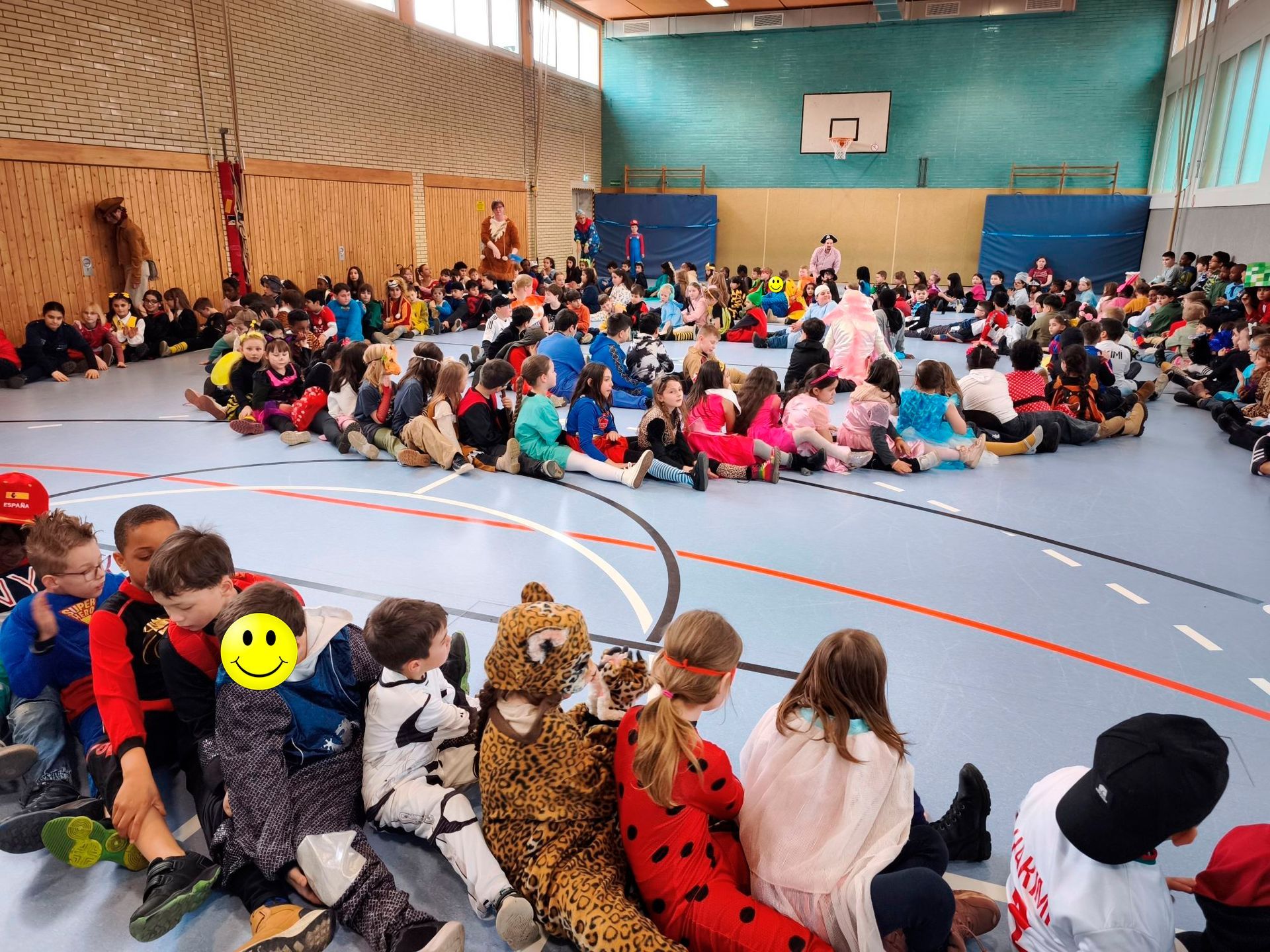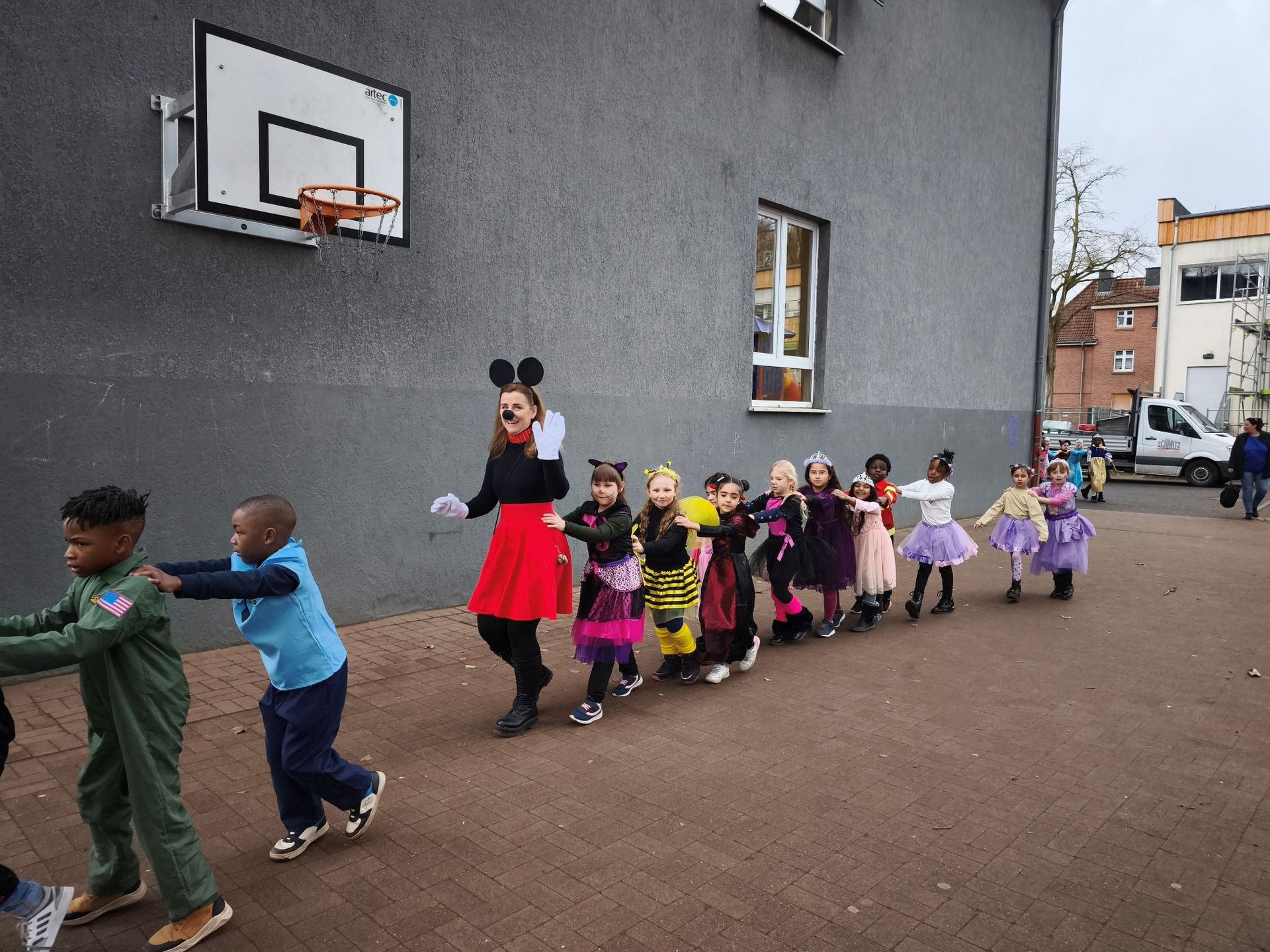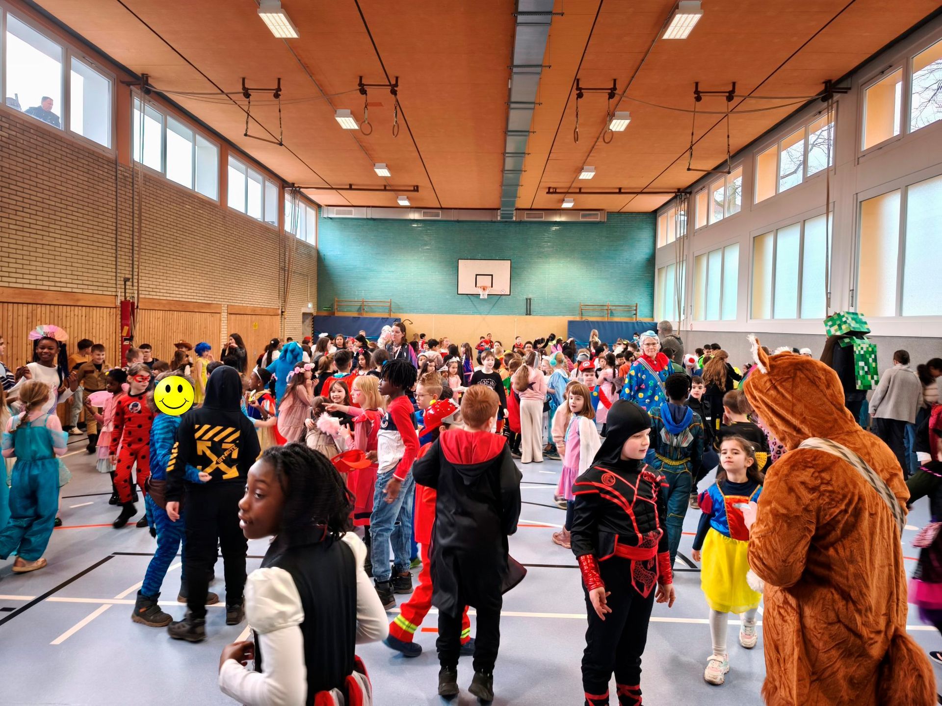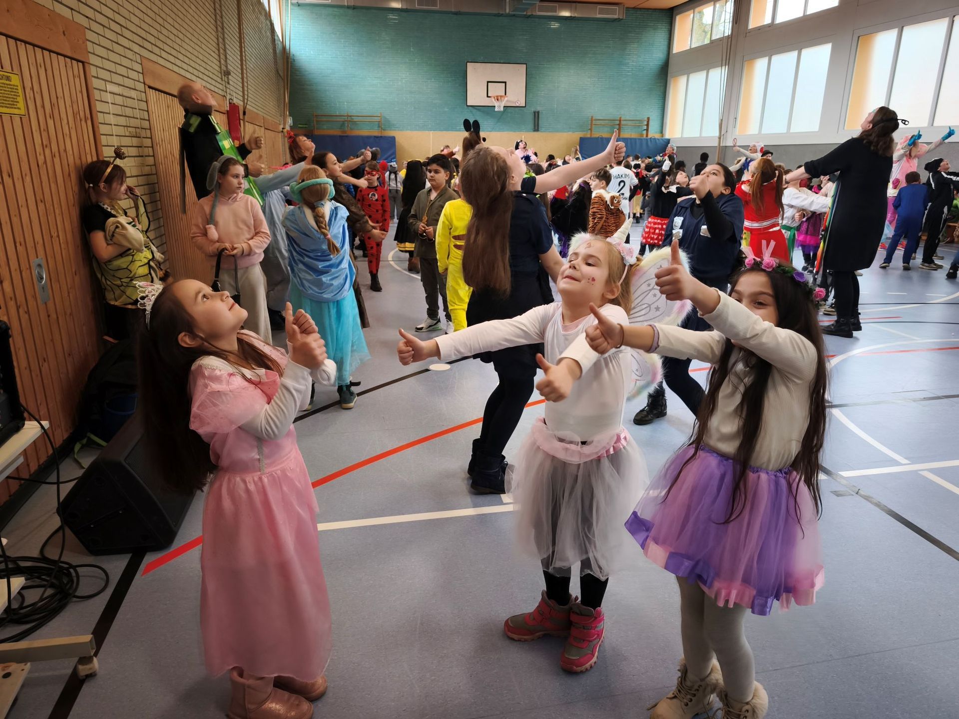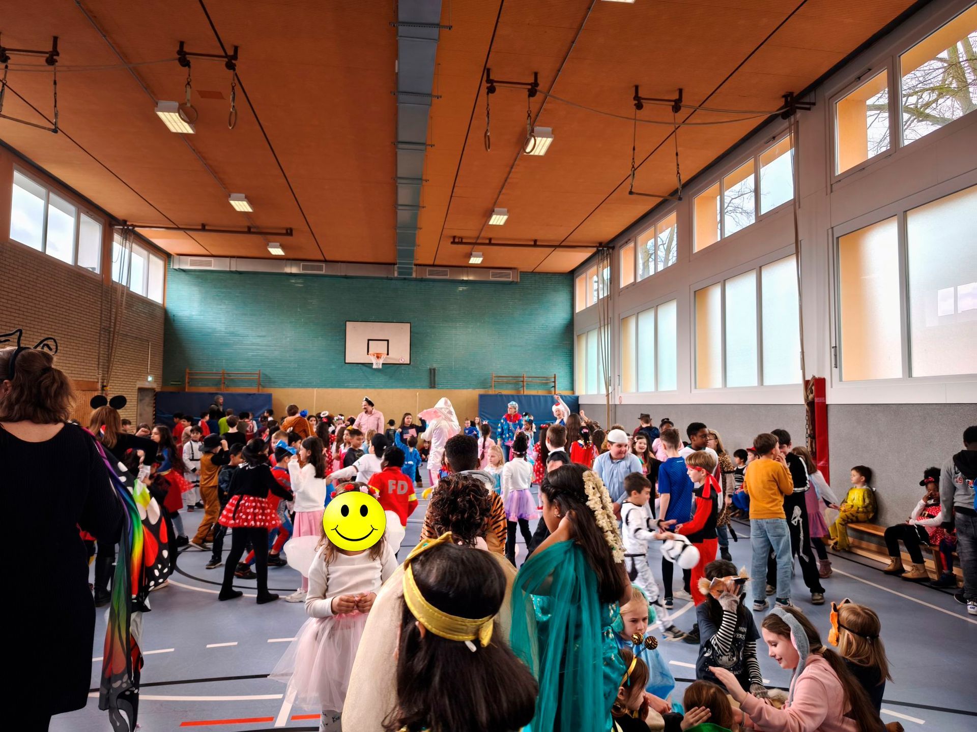 Am 27. Februar hieß es wieder: „Helau und Alaaf!“ – Unsere Schule wurde auch in diesem Jahr von fröhlicher Karnevalsstimmung erfüllt. Schon am Morgen strömten prinzessinnenhafte, heldenhafte, tierische und viele weitere fantasievoll verkleidete Schülerinnen und Schüler in die Klassenräume. Dort wurde zunächst ausgelassen gefeiert: Bei leckeren Süßigkeiten, lustigen Spielen und fröhlichem Tanzen verwandelten sich die Klassenzimmer in kleine Partyzonen voller guter Laune und buntem Treiben.